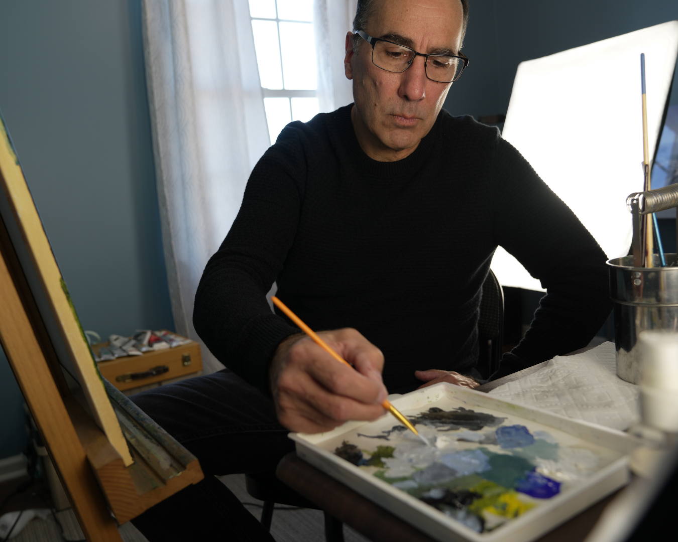 Hey, I’m Rob Manaraze—an artist based in North Carolina. My work lives at the intersection of place, memory, and faith. I hike the trails, study the light, sketch on site, and paint the moments people never want to forget: a first summit, a family trip, the view that feels like home.