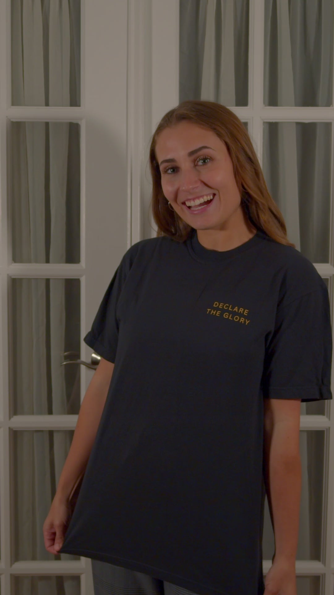 The female model (my daughter!) in the video is 5'3" and 130 lbs. She's wearing a black size large in this video for a comfy, oversized fit.